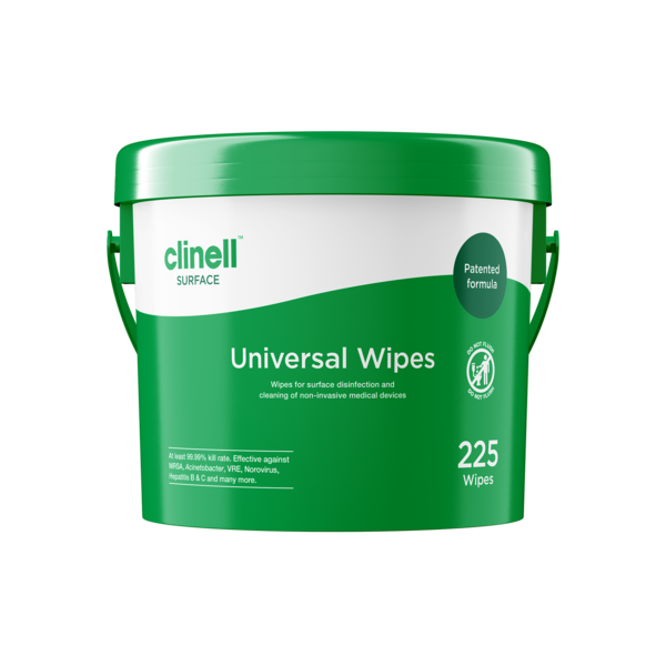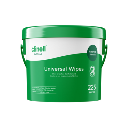 Clinell Universal Wipes (Tub of 225) are convenient, pre-saturated wipes designed for efficient cleaning and disinfection of hard, non-porous surfaces. They combine the benefits of detergent and disinfectant properties in a single step, supporting consistent hygiene standards in both professional and domestic environments.